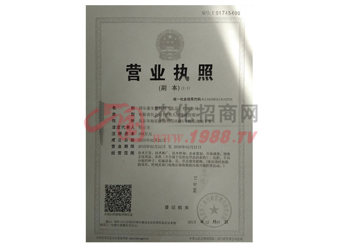 邦爾泰生物科技(北京)有限公司是農(nóng)業(yè)產(chǎn)業(yè)化標(biāo)準(zhǔn)企業(yè)、北京市高新技術(shù)企業(yè),是LTD農(nóng)業(yè)技術(shù)轉(zhuǎn)化為生產(chǎn)力的定點(diǎn)單位。主要從事新型綠色環(huán)保農(nóng)藥、特色肥料的研發(fā)和推廣經(jīng)營(yíng)。誠(chéng)信才能長(zhǎng)久,共享方能共贏,邦爾泰仁為天下農(nóng),秉承的信念是邦爾泰事業(yè)長(zhǎng)青的基石!