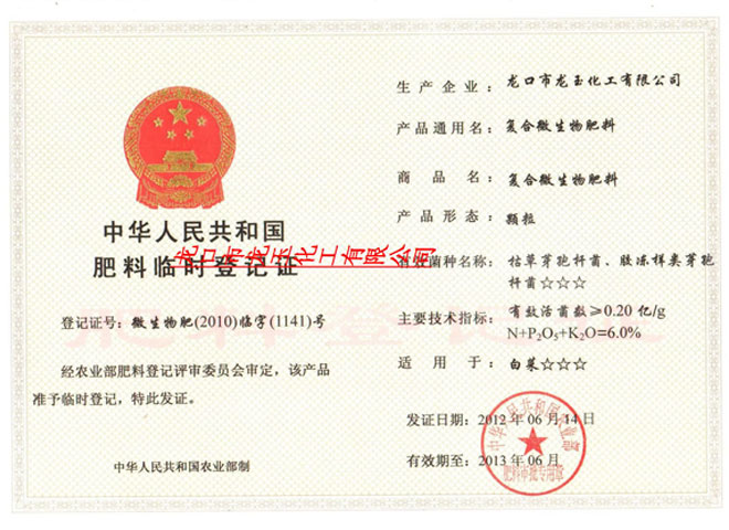 • 肥料臨時登記證肥料臨時登記證