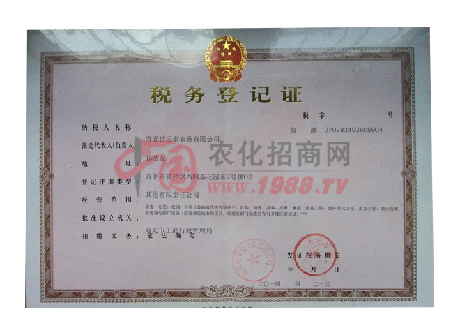 • 稅務(wù)登記證稅務(wù)登記證