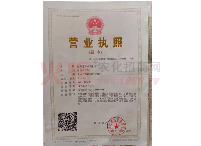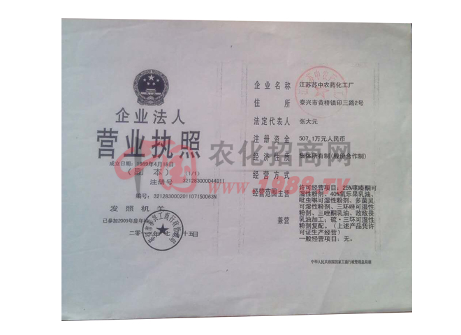 我廠系江蘇省農藥生產定點廠家,國家中型企業(yè)。擁有外貿自營進出口權,工廠占地面積4萬平方米,建筑面積2.8萬平方米。擁有固定資產2500萬元,具有農藥原藥生產,加工制造能力及化工產品生產條件,水、電、氣公共設施配套齊全,檢測手段完備,擁有氣相色譜議,液相色譜儀等檢測設備,工廠現在以生產農藥殺菌劑、殺蟲劑、除草劑三大系列產品為主,年產值5000萬元以上,產品銷往全國各地。技術合作緊密層為水稻研究所,揚州大學農學院,熱忱歡迎有識志士前來洽談合作和加工生產。