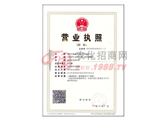 登封市新鑫農(nóng)科材料有限公司注冊(cè)資金3000萬(wàn)元,占地面積1000余畝。生產(chǎn)的無(wú)公害礦物型“沃特壯”牌土壤調(diào)理劑,已經(jīng)列為全國(guó)土壤調(diào)理劑政府招標(biāo)工程推薦單位;生產(chǎn)的高科技功能型“沃特壯”牌摻混肥是河南省測(cè)土配方肥定點(diǎn)生產(chǎn)企業(yè)。